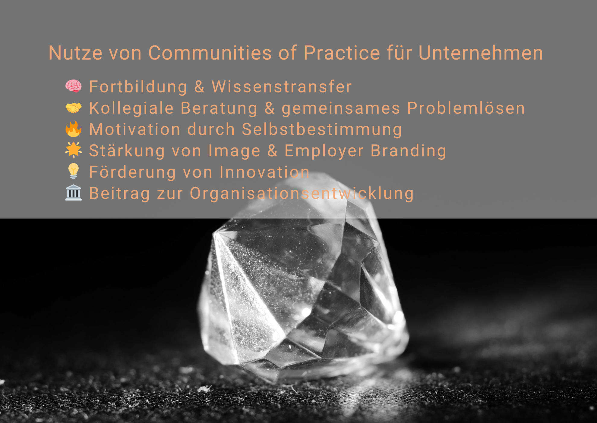CoPs fördern eine Kultur des Teilens, Lernens und Mitgestaltens. Sie unterstützen horizontale Vernetzung, bauen Silos ab und stärken damit die Entwicklung hin zur agilen, lernenden Organisation – ein klarer Vorteil in Zeiten ständiger Veränderung.